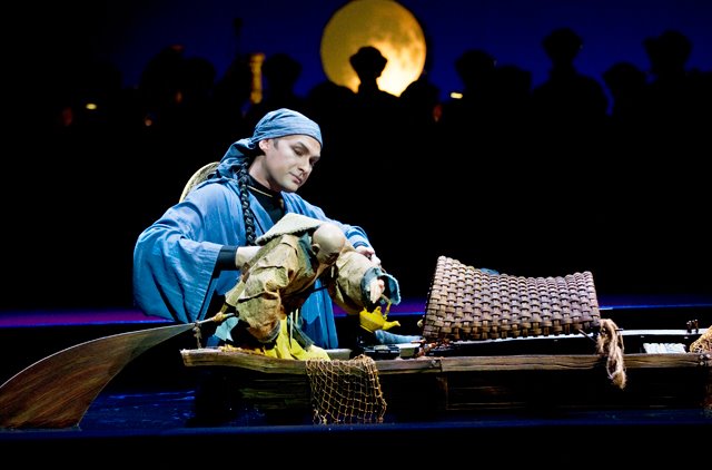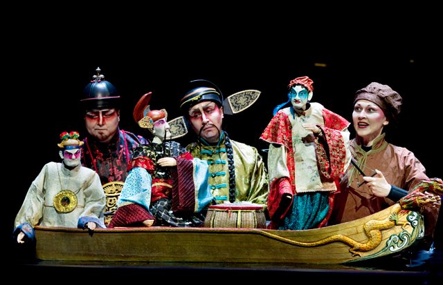 Want uitgerekend als Russische volksliederen klinken, toont Lepage het meest Chinese element van de avond (het schaduwspel); wanneer de Russische solisten Olga Peretyatko en Ilya Bannik tot grote hoogten in hun eigen taal stijgen, speelt Lepage met poppen die niets met Rusland te maken hebben.