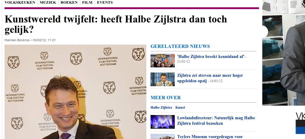 Volgens de Volkskrant was Rick van der Ploeg in het begin van de jaren negentig staatssecretaris van cultuur (in werkelijkheid was hij dat aan het eind van die jaren), en in Het Parool beweert columnist Gerard Mulder dat het feit dat hij 'gelukkig niets van kunstsubsidies afweet' hem niet af hoeft te houden van een paar wilde speculaties over waarom de aanvragen van cultuurinstellingen in Amsterdam lager uitvallen dan verwacht.
