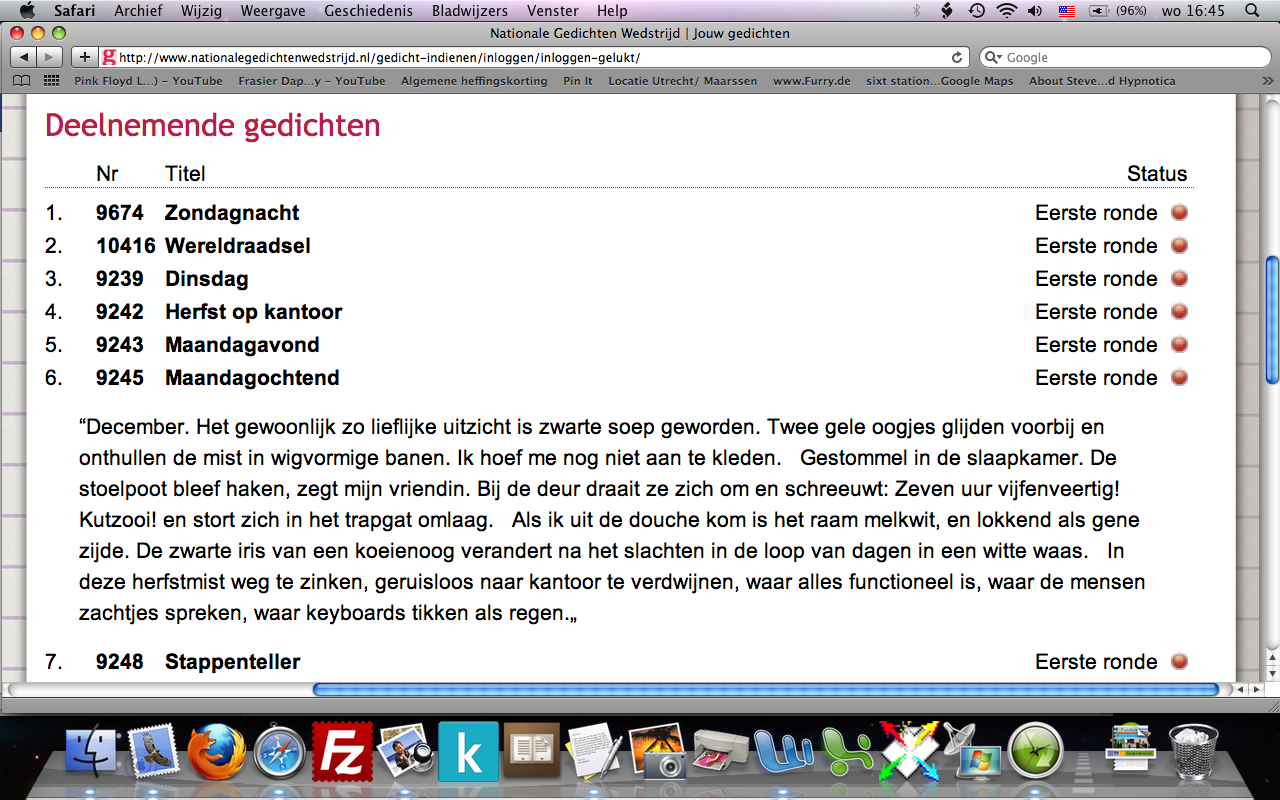 Onrust in poëzieland. Door een fout ‘onduidelijkheid’ in de website van de Nationale Turing Gedichtenwedstrijd zijn enkele honderden gedichten waarschijnlijk om verkeerde redenen uit de competitie verdwenen. Alexis de Roode, zelf al meerder malen in de prijzen gevallen, kaartte de zaak aan via facebook. Zijn gedicht ‘Maandagochtend’ bleek – eenmaal in het systeem – geen gedicht meer, maar een stuk proza, zonder de regelafbrekingen die bij een gedicht horen.