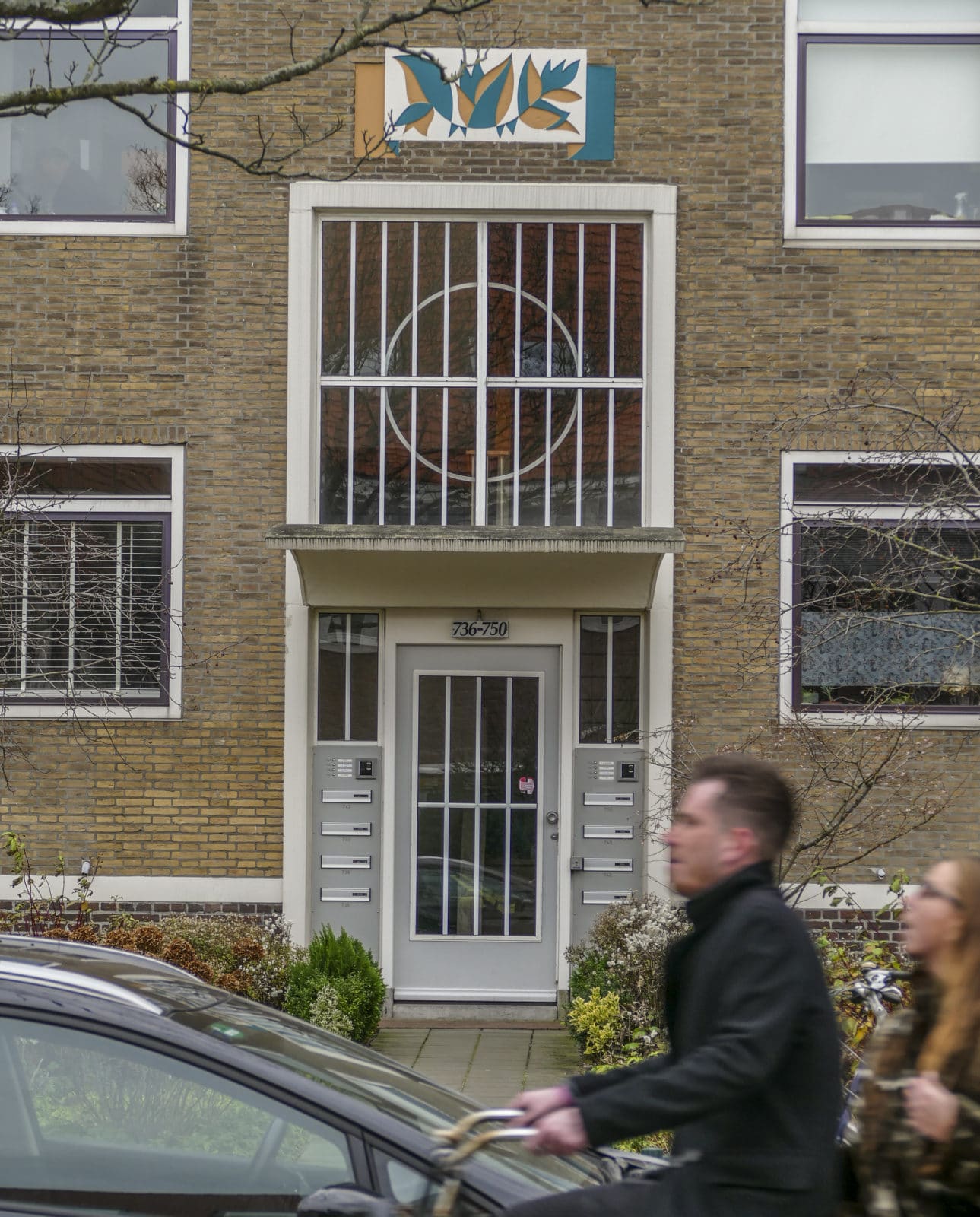Wederopbouwkunst. Tijdsbeelden in een vorm die je (nu nog) op en in Haagse flatgebouwen, Haagse kweekscholen, bankgebouwen, of in het hoofdkantoor van de Shell kon tegenkomen. Goeting was het décor van mijn jeugd. Wel gezien toen, maar niet opgemerkt.