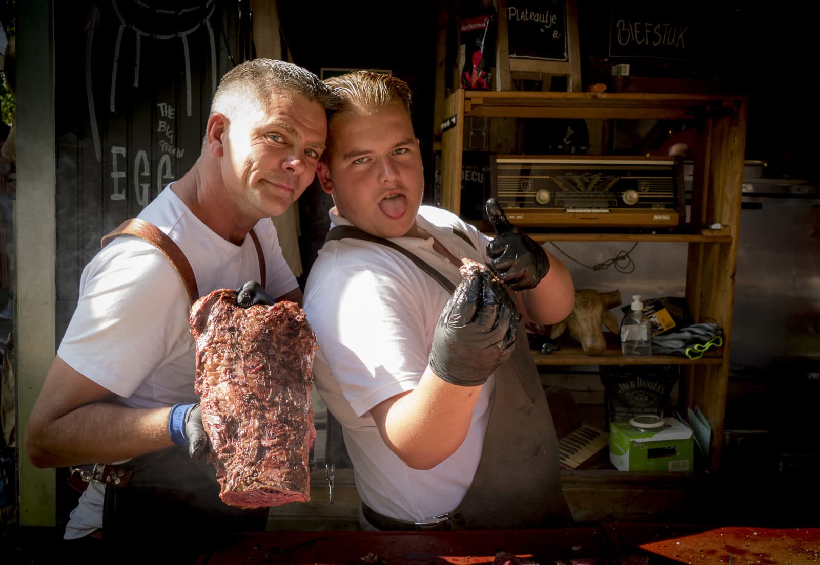 Het is tijd voor de achterkant van het fraaie TREK-borduurkleedje. Dat bevindt zich op een geïmproviseerde campinkje achter wat schermen in een hoekje van het terrein. Een caravan en wat schamele tenten vormen het zenuwcentrum van het festival. Daar verblijft de helft van het managementteam van Four Entertainment, doorgewinterde zomerfestivalbouwers die onder meer verantwoordelijk zijn voor TREK, Wijn- en Speciaal Bierfestival, Live on the Beach en Internationaal Vuurwerk Festival Scheveningen. Michiel Marcelis en Raymon van Sprang zijn de aanwezige managing partners. Raymon: ‘Vijf jaar terug maakten we zonder sponsor de grote sprong. Er bestond toen nog geen echt food truck festival, alleen Rollende Keukens. We hebben steeds meer entertainment toegevoegd en veel nostalgische muziek, voor het gevoel.’