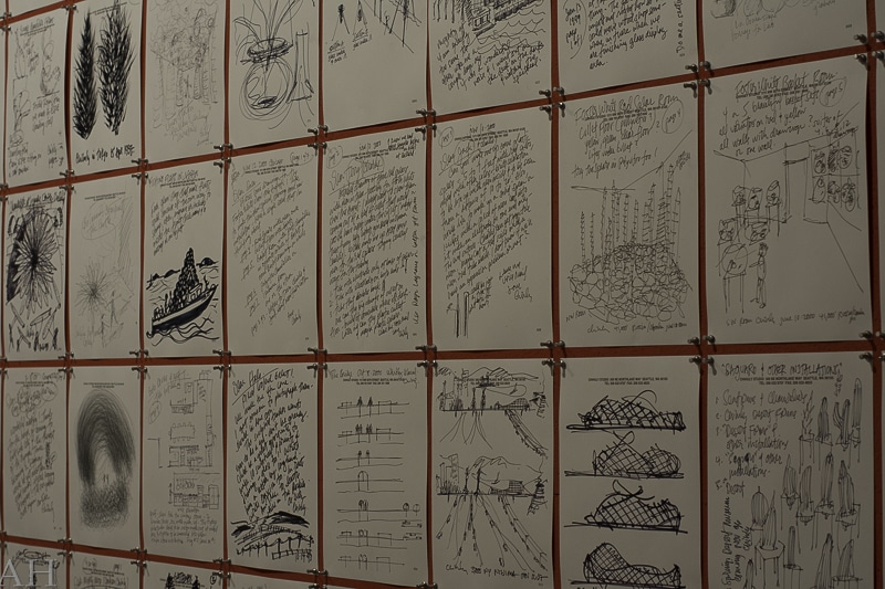 Ook leuk om te zien en lezen is de ‘fax-muur’. Hier zie je duizenden brieven die Chihuly via de fax heeft verstuurd. De documenten bevatten persoonlijke boodschappen, schetsen en plannen voor installaties enzovoort.