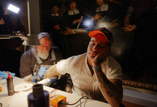 Douwe Bob se fait tatouer par Henk Schiffmacher à la Maison Willet-Holthuysen